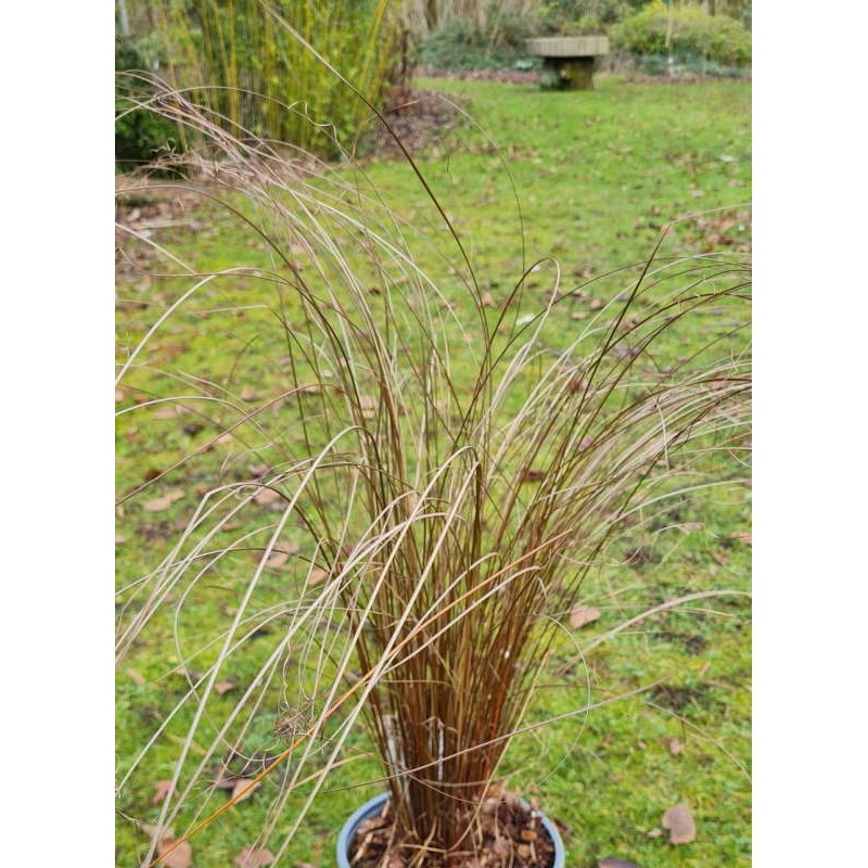 A clump forming evergreen grass, Carex buchananii 'Red Rooster' has upright, long, narrow dark rusty red leaves which develop orange tints in autumn/winter. Bronze/brown flower spikes develop in summer.